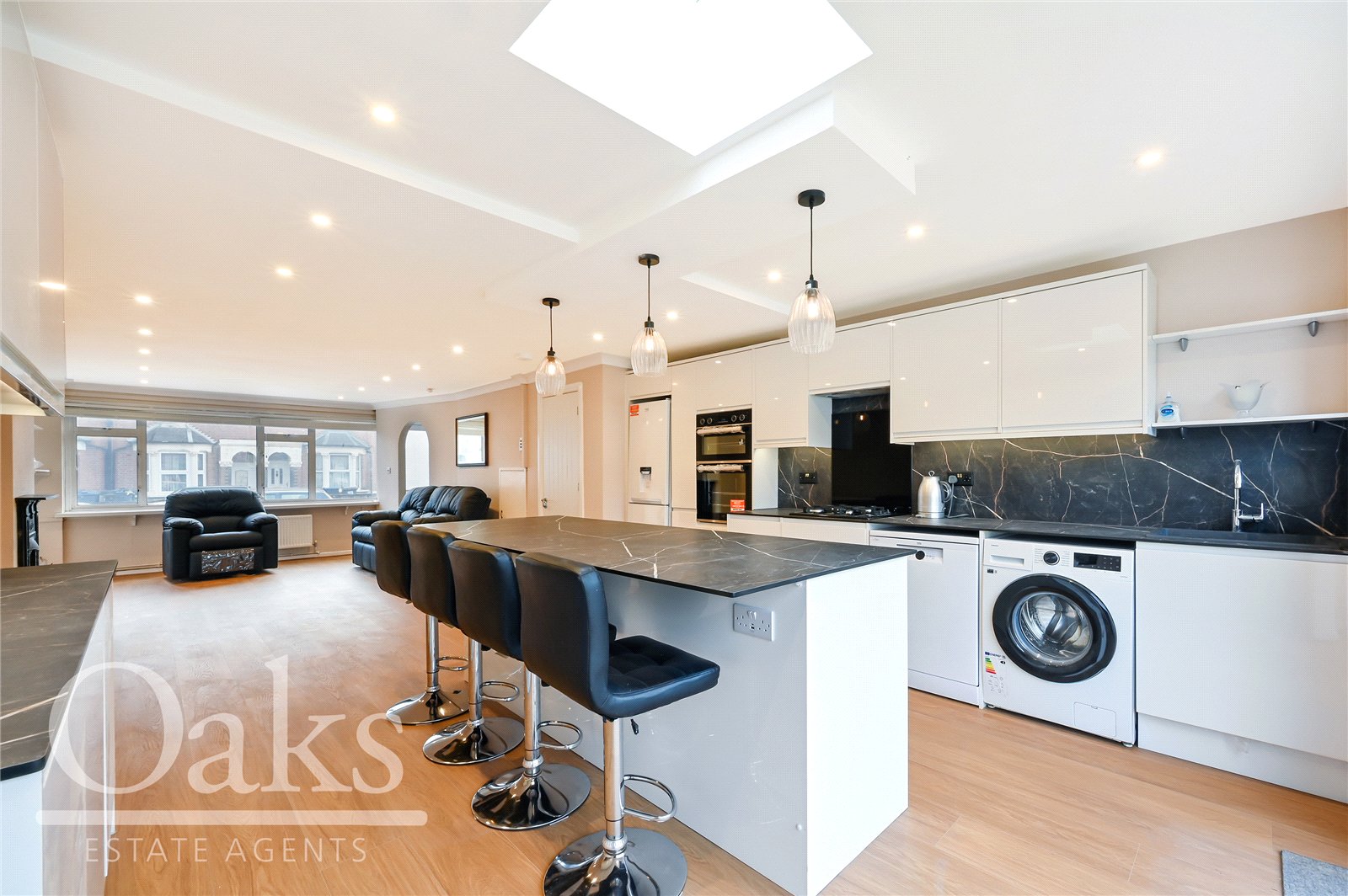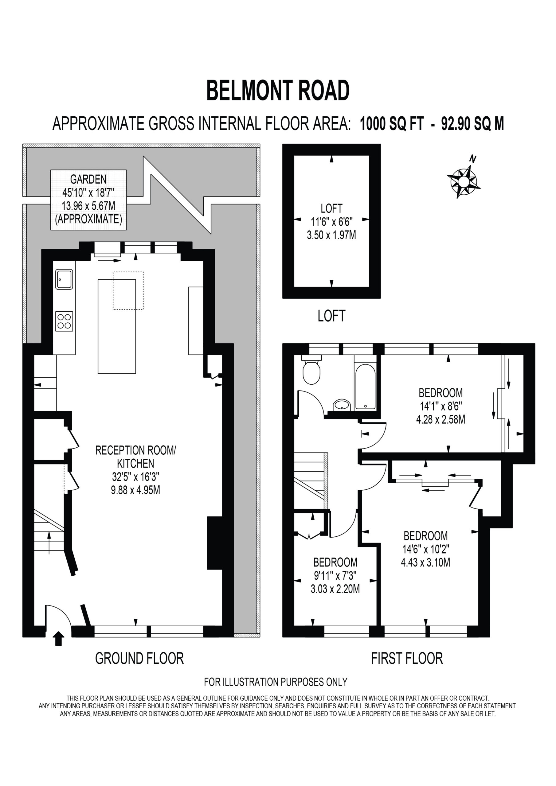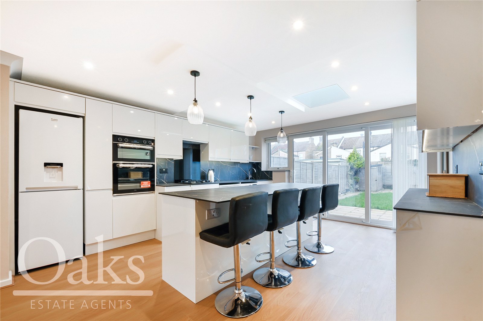 Available immediately, this attractive family property provides approximately 1,000 sq. ft. of well-designed living space and comprises three well-proportioned bedrooms with built in wardrobes, a bright and spacious open-plan double reception room, a contemporary fitted kitchen with central island, low-maintenance private garden and private driveway with space for three vehicles.