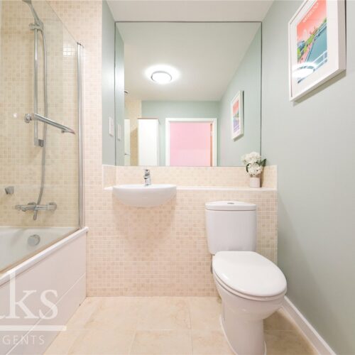 The flat benefits from a private balcony accessed directly from the reception room, providing an ideal spot for morning coffee or evening relaxation. The home has been carefully maintained and improved by the current owners, who have completed a series of tasteful upgrades that enhance both comfort and presentation. Recent works include full re-decoration throughout, new kitchen tiling, new carpets in the bedrooms, and the addition of fitted wardrobes in the principal bedroom. These improvements complement the existing modern specification of the building, creating a warm, contemporary and move-in ready home.