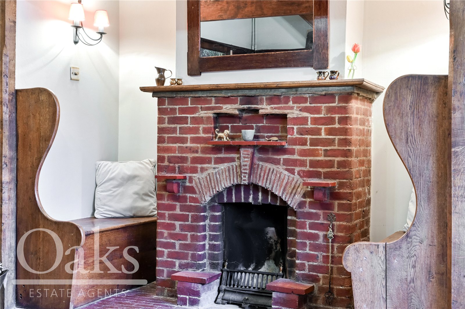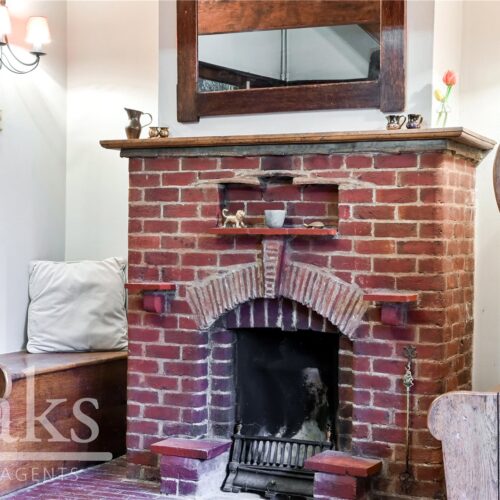 This exceptional property strikes the perfect balance between characterful period features and stylish modern living. A picturesque pathway, framed by mature greenery and vibrant planting, leads to the front door and sets the tone for what lies within. Upon entering, you are welcomed by an inviting entrance hall showcasing exposed beams and a cosy fireplace, an ideal space for welcoming guests and a wonderfully warm introduction to the home.