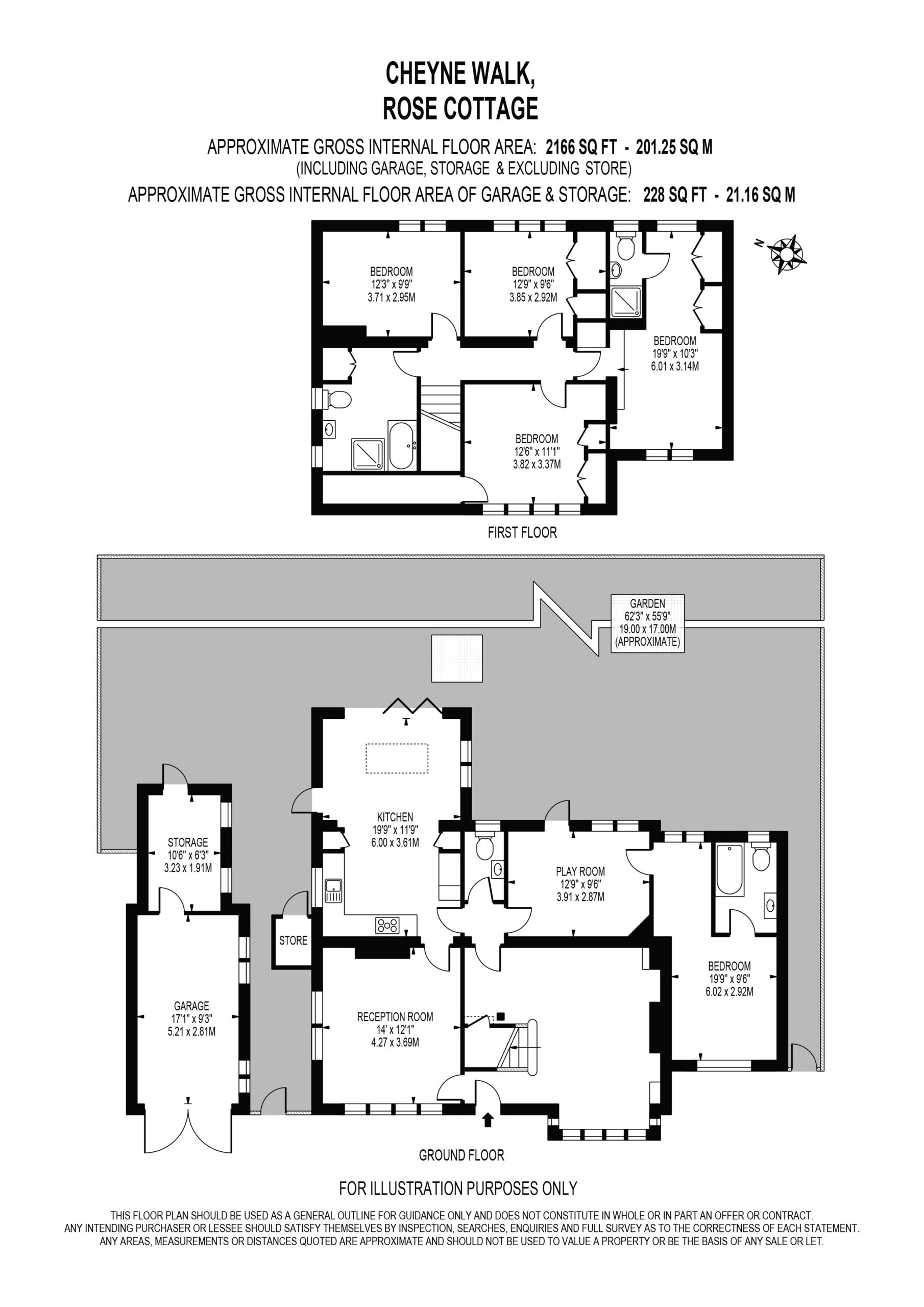 The rear garden connects seamlessly with the kitchen and dining area, creating a fantastic indoor outdoor living space. It offers a perfect balance of a patio area for relaxing and entertaining, alongside a generous lawn ideal for children to play. Additional benefits include a charming summer house and a substantial garage, providing excellent storage or potential for conversion into a home office or studio, subject to requirements.