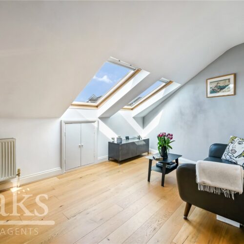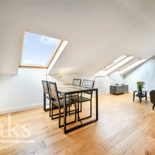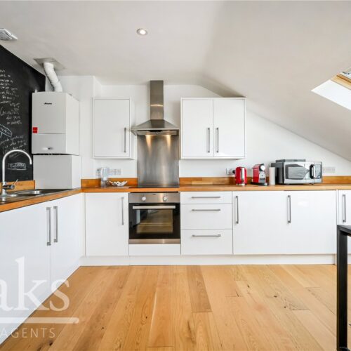 Positioned on the top floor, this charming home comprises a generous double bedroom with direct access onto a private balcony, creating a perfect spot to enjoy some outdoor space. The property further benefits from a spacious open-plan kitchen and living area, providing a sociable and practical layout with ample storage and worktop space, alongside a well-appointed bathroom. Large windows and the elevated position ensure the flat is flooded with natural light.