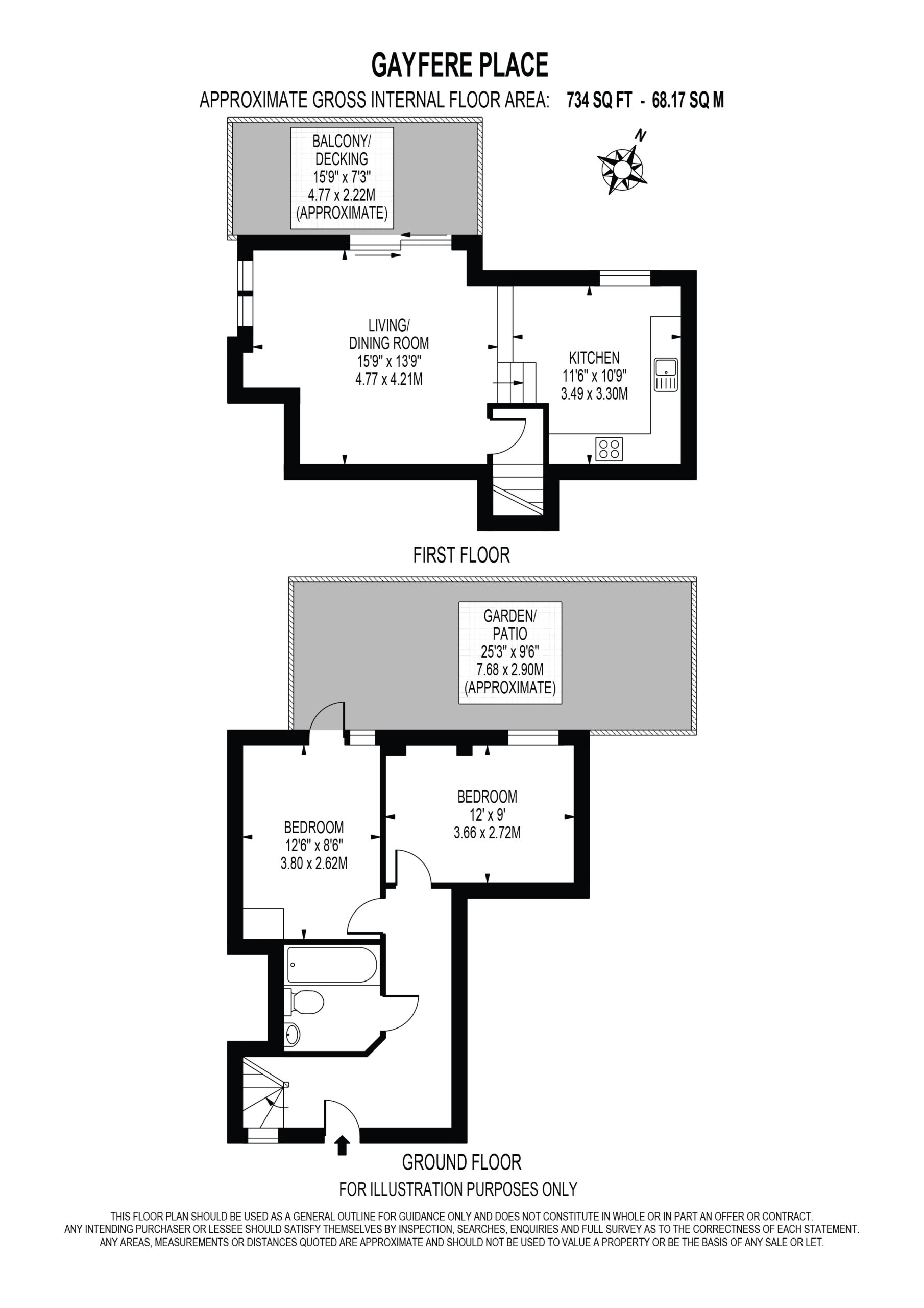 Arranged over two floors, Gayfere Place briefly comprises; two double bedrooms with direct access to a private garden and a modern bathroom suite on the ground floor with the first floor boasting contemporary fitted kitchen with integrated appliances and a spacious living room leading out on to your own private balcony/decking area.