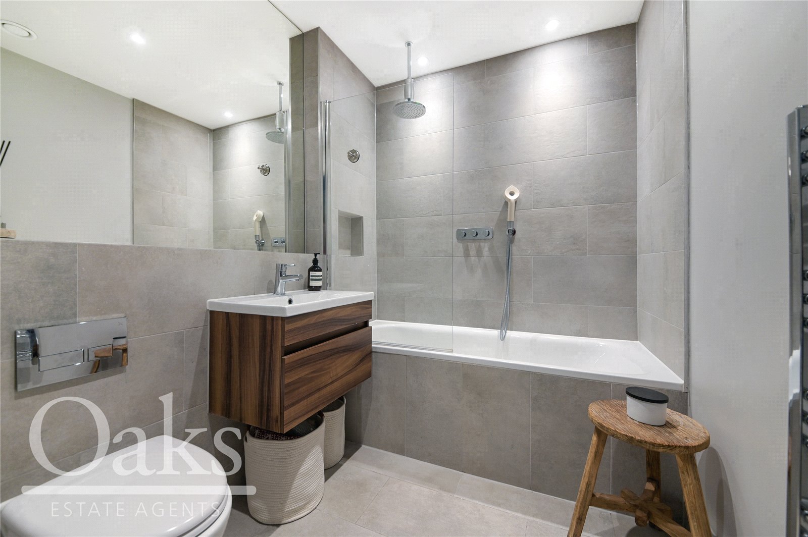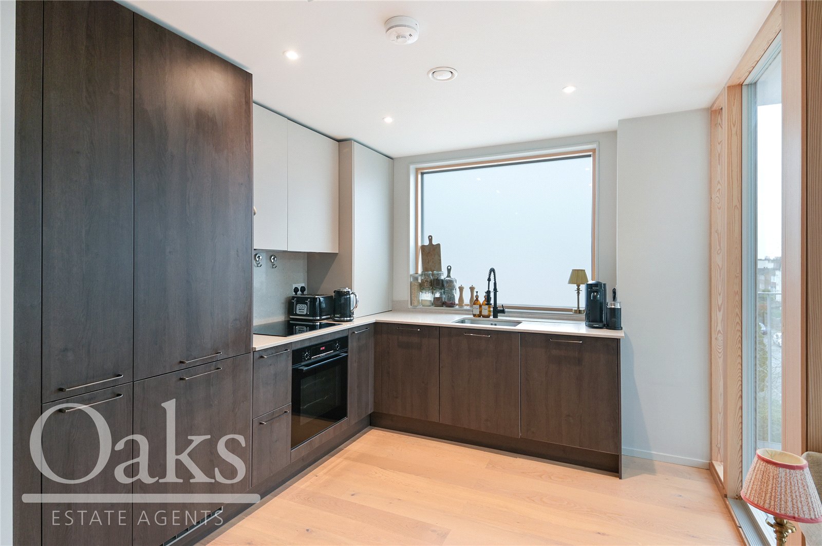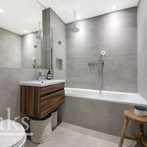 Situated on the top floor, this penthouse style apartment offers a wonderfully bright and airy feel throughout. The reception area benefits from impressive floor to ceiling windows which flood the space with natural light, creating an inviting and uplifting living environment. The apartment features well proportioned rooms, generous storage options and stylish open plan living, centred around a fully integrated kitchen that is both modern and sleek. A private balcony and communal terrace provides the perfect space to relax or entertain, while the neutral décor throughout enhances the calm and contemporary feel of the home.