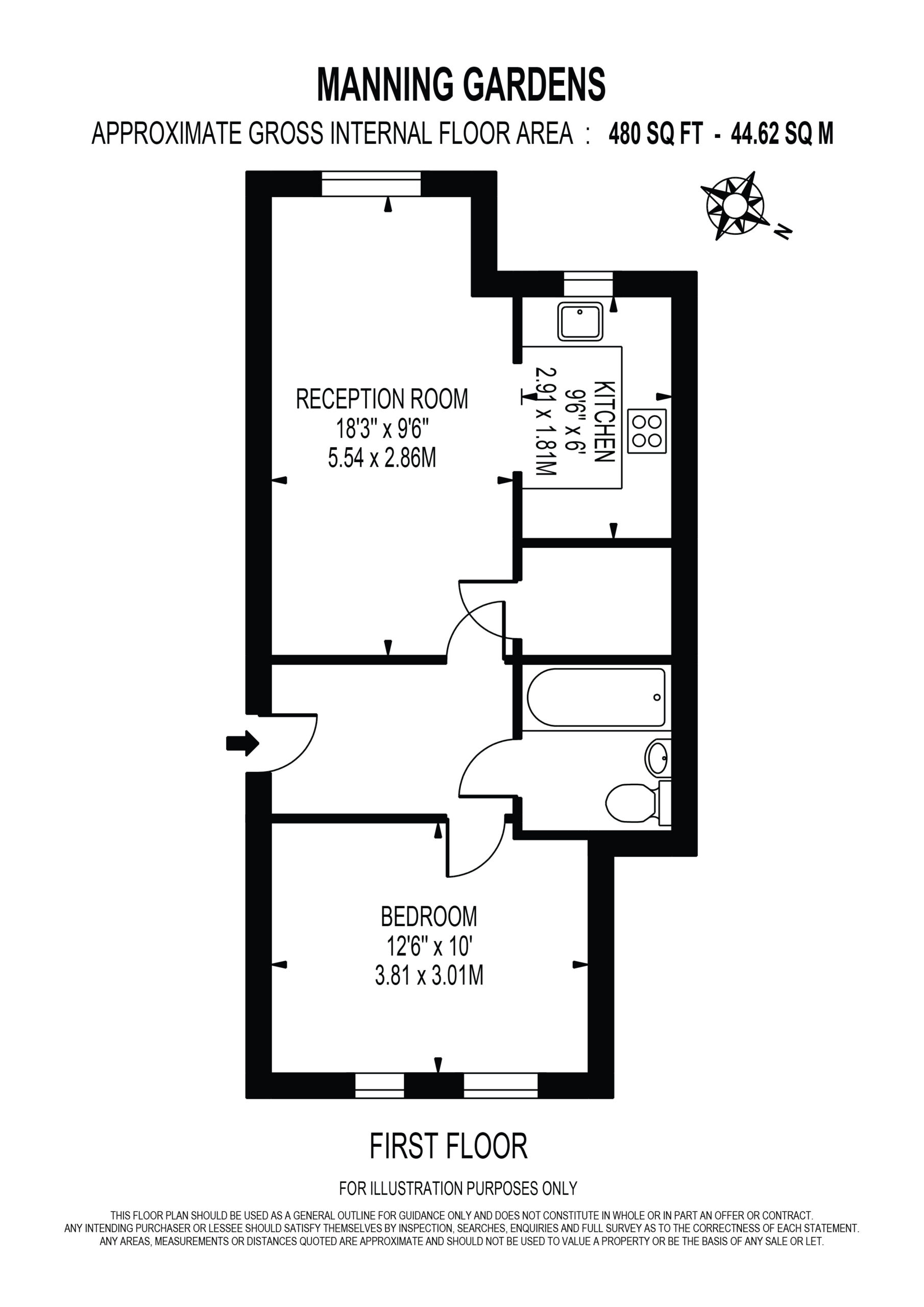 Extending to approximately 480 sq ft, the property features a generously sized double bedroom, a contemporary family bathroom, and a bright open-plan living area seamlessly incorporating a modern kitchen, with ample space for dining. Further benefits include excellent storage throughout, a long lease, and residents’ parking.