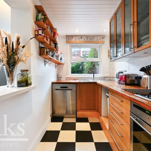 Light, airy and thoughtfully modernised throughout, the property briefly comprises two well-proportioned bedrooms, a spacious living room, family bathroom, and an extended kitchen and dining area that opens directly onto a large, sunny rear garden. The extension has also allowed for a welcoming entrance hall and enough flexibility downstairs to comfortably use part of the ground floor as a third bedroom or home office if required.