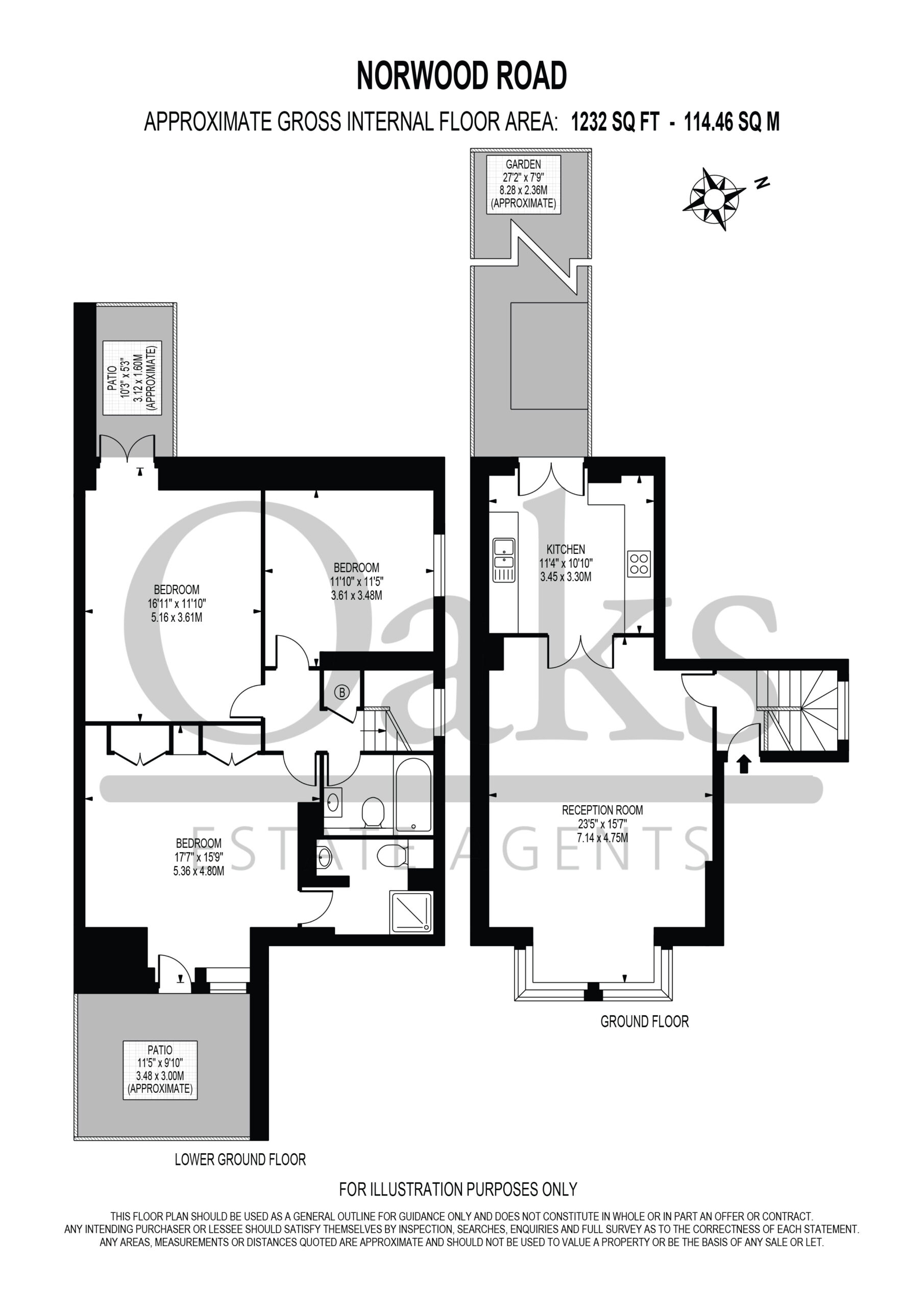 Arranged over multiple levels, the flat offers three well-proportioned bedrooms, providing flexibility for family living or home office space. The property also benefits from two private patio areas and a small garden, perfect for outdoor entertaining, relaxing, or enjoying some quiet greenery in the heart of the city.