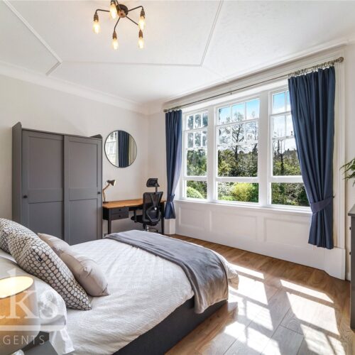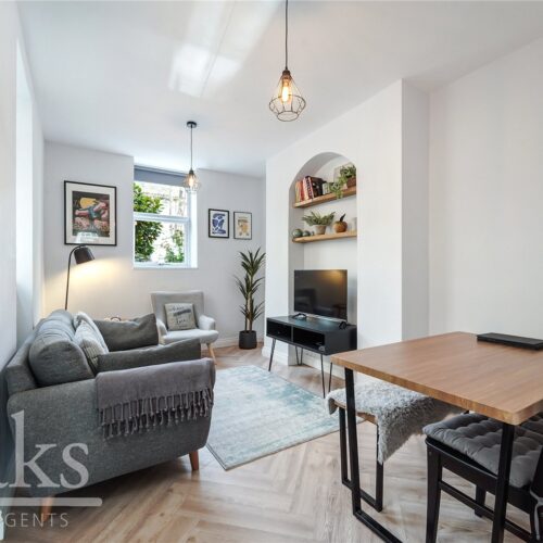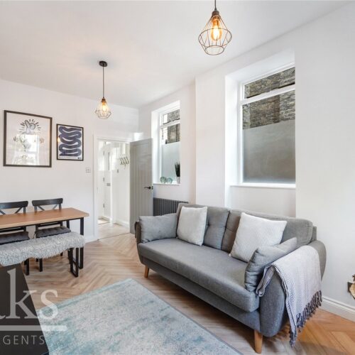This fully modernised home is accessed via its own front door and comprises two large double bedrooms, both well-proportioned and ideal for comfortable living. The property also benefits from a separate kitchen fitted with integrated units, a modern family bathroom, and a spacious reception room, perfect for both relaxing and entertaining. The split-level layout adds to the sense of space, while beautiful stained glass windows and period detailing enhance the charm and uniqueness of the home.