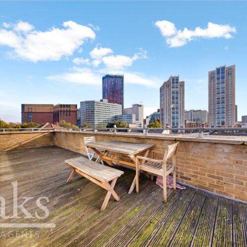 This charming roof top apartment benefits from 708 sq. ft. of living space and briefly comprises; two double bedrooms, open plan living/diner/kitchen, contemporary bathroom suite and huge private roof terrace. The furniture remaining is all the furniture in the pictures.
