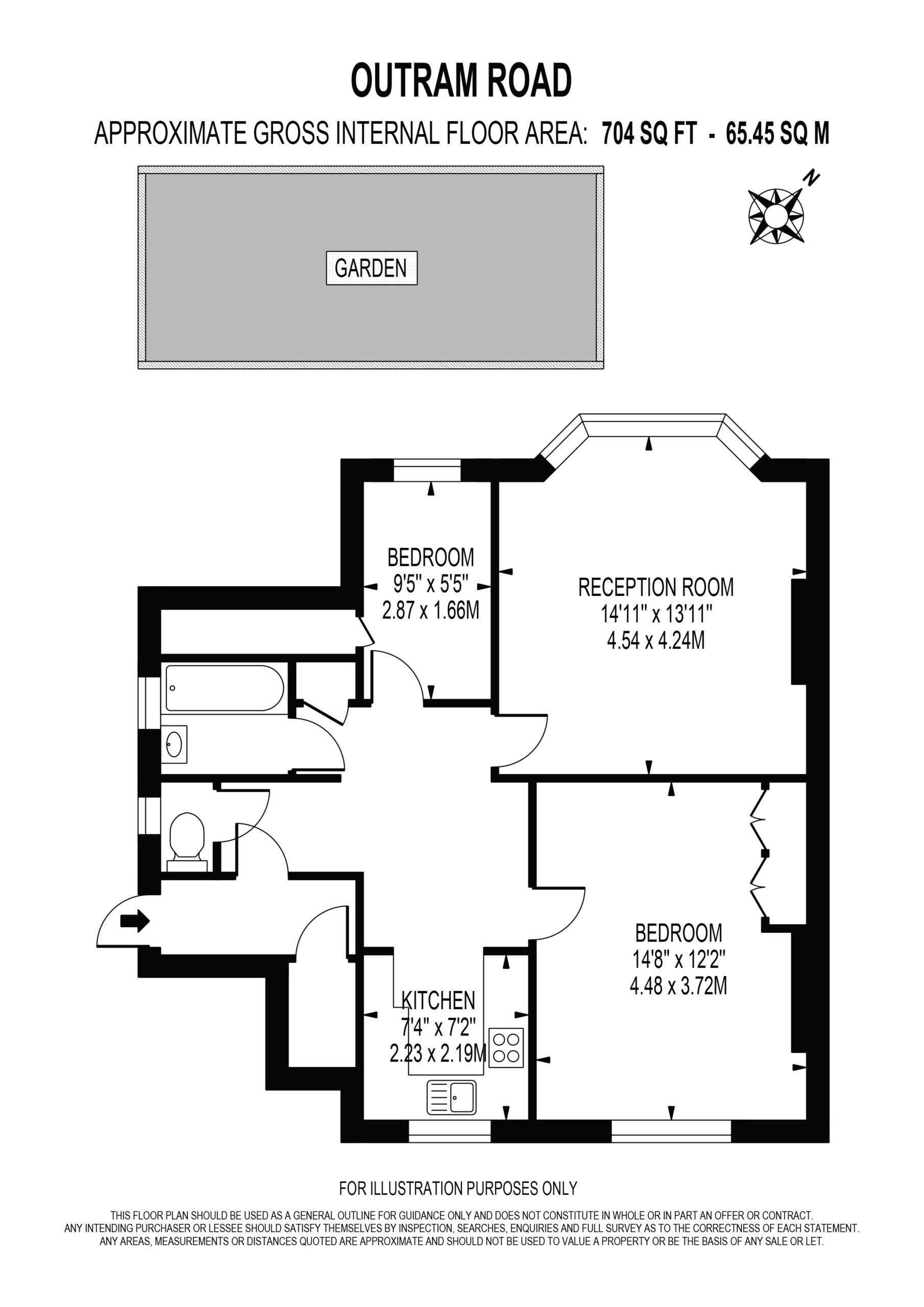 Boasting approximately 704 sq. ft. of internal living space, this beautifully presented home features a spacious master bedroom with fitted wardrobes, a generous second bedroom with built-in storage, a separate modern kitchen with integrated appliances, a stylish bathroom with a separate WC, and a bright and spacious lounge enhanced by a charming bay window. The property also benefits from ample storage throughout and access to a lovely communal garden.