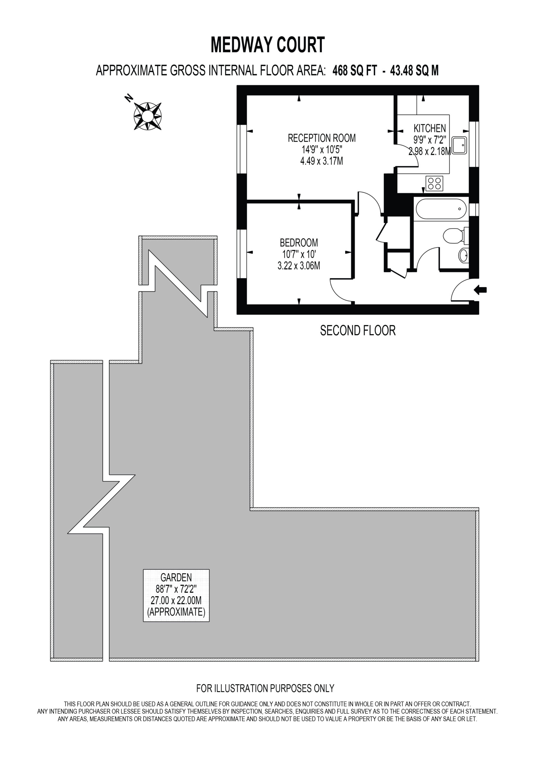 This property is light and airy throughout, this property benefits from 468 sq. ft. of living space and briefly comprises; one double bedroom, spacious living room, bathroom suite and a contemporary fitted kitchen.