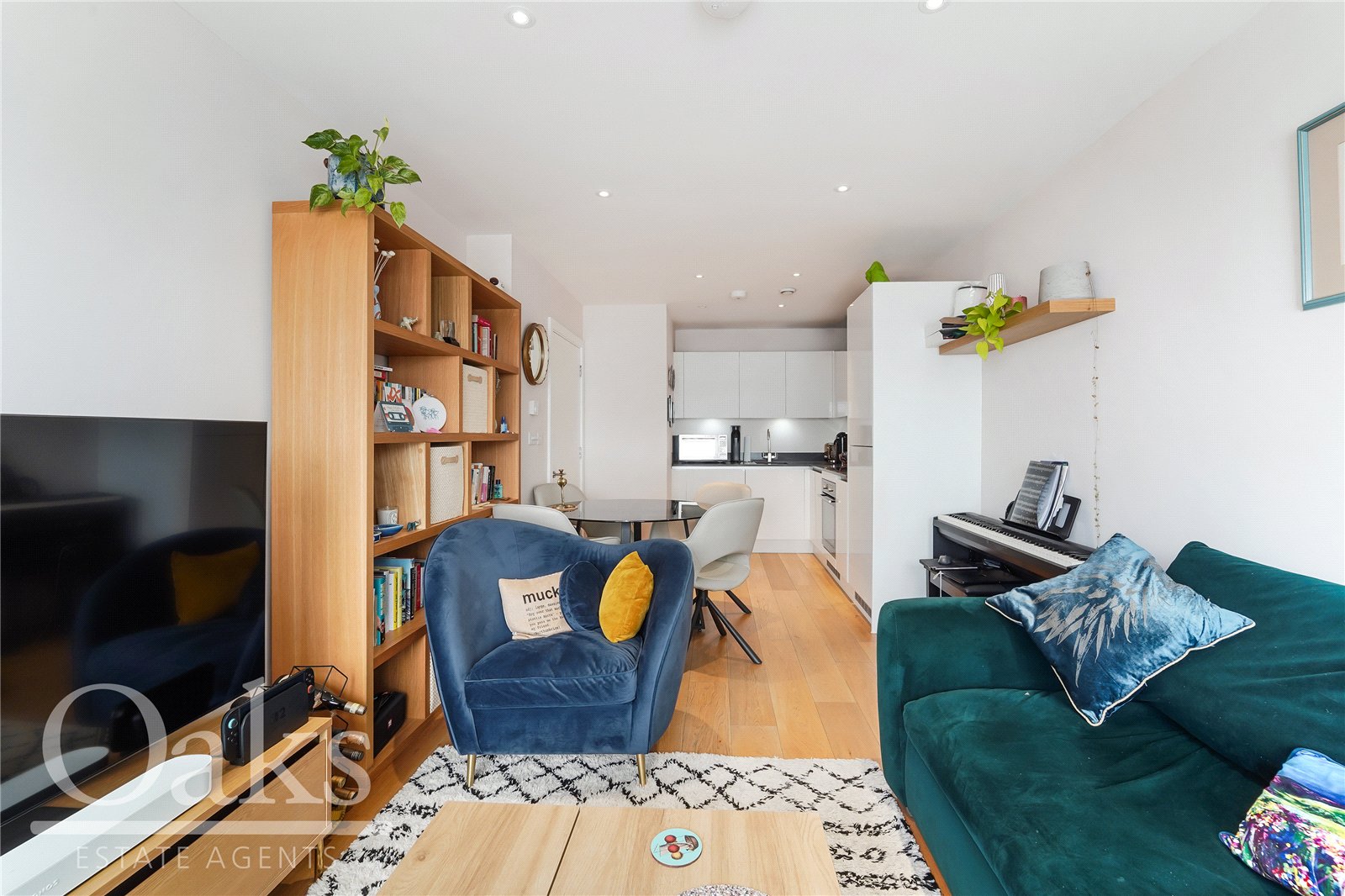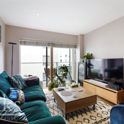 The property offers a generous double bedroom, a sleek and contemporary bathroom, and a stylish open plan kitchen and living space with ample room for dining. The living area opens directly onto a private balcony, providing a seamless extension of the living space and an ideal setting for morning coffee or evening drinks.