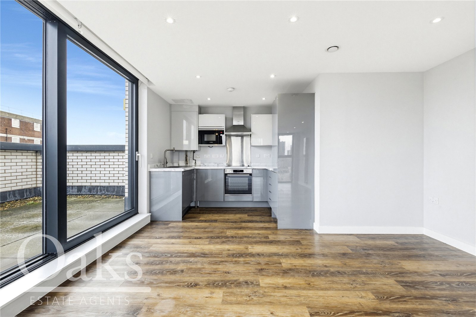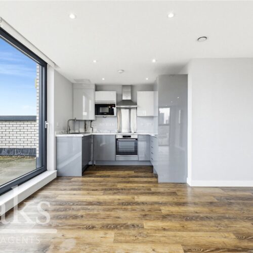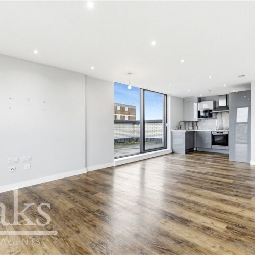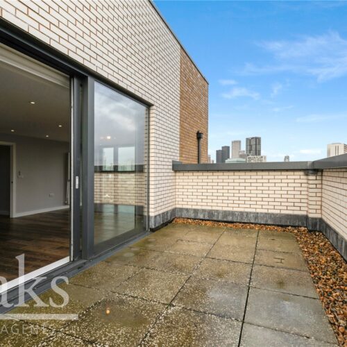 Extending to an impressive 872 sq. ft., this beautifully presented home offers bright, contemporary living throughout. The property comprises two generous double bedrooms, a spacious open-plan kitchen and reception area with ample space for dining and entertaining, a sleek modern bathroom, and a private terrace enjoying far-reaching views.