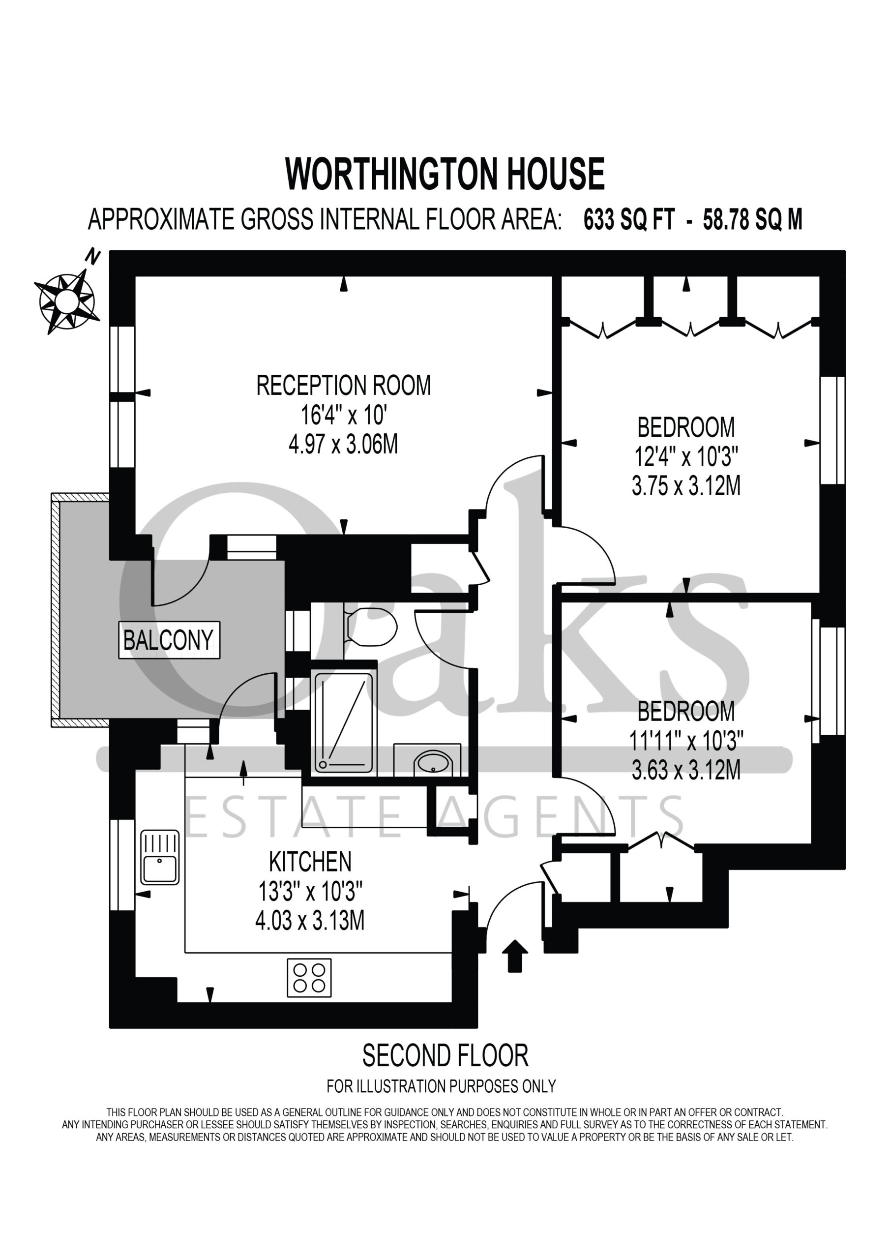 The reception room provides a comfortable and inviting living space with direct access onto a private balcony, offering a pleasant spot to relax and unwind. The separate kitchen is modern and practical, with ample storage and worktop space, ideal for both day to day living and entertaining.